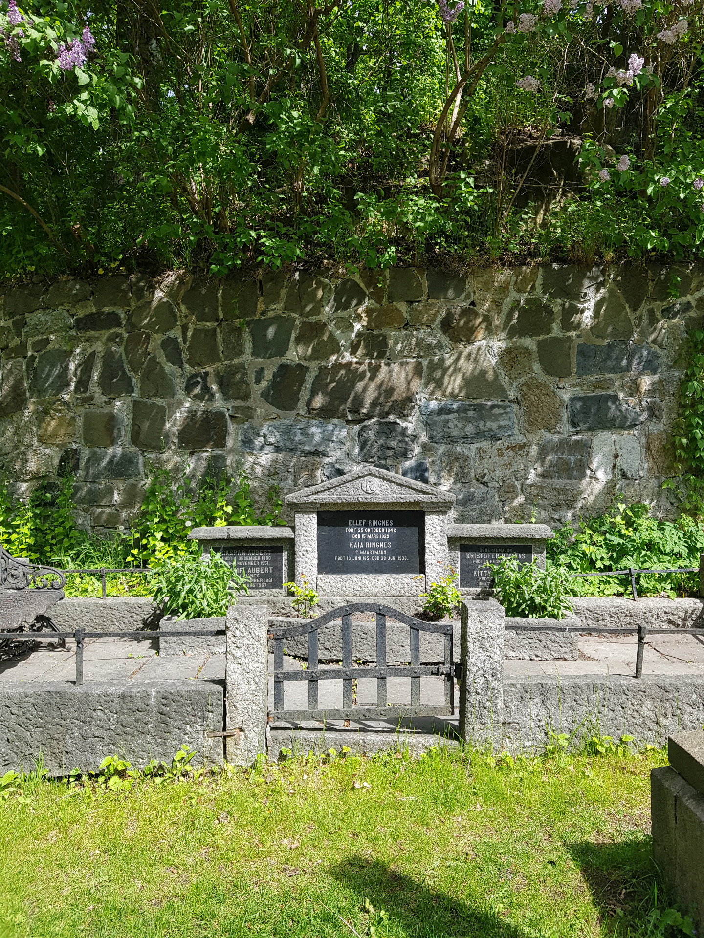 Ellef Ringnes (25.10.1842 - 15.03.1939) ligger gravlagt på vestre del, gravnr. 01.043.03.028.